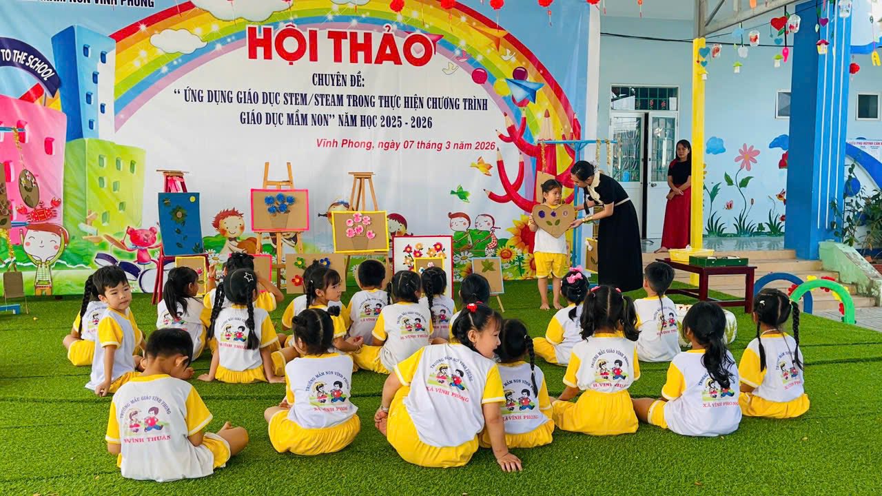 Sáng ngày 7/3/2026 tại Trường Mầm non Vĩnh Phong đã diễn ra hội thảo chuyên đề ứng dụng STEM trong thực hiện Chương trình Giáo dục Mầm non năm học 2025–2026.